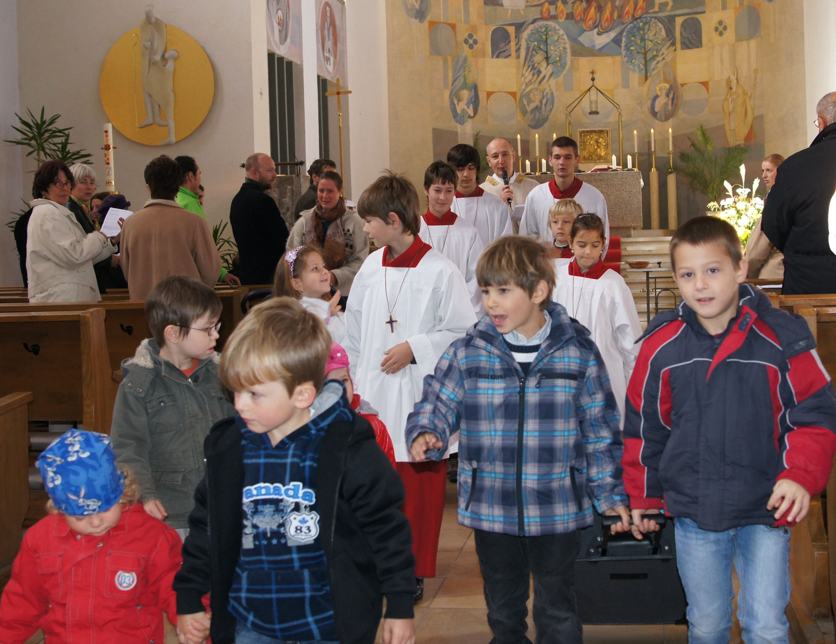Vasárnap a gyermekek részére szervezett rendhagyó szentmisén vesznek részt a felnöttek is. A gyermekek a ministránsokkal együtt vonulnak be a szentmisére, miközben az elsö dallal az egész közösség ráhangolódhat a vidám gyermekmisére. A bűnbánati részben a gyermekek aktívan résztvehetnek és ajándékcsomagokba teszik mindazt a jót és örömet amit a Jóistennek és szüleiknek akarnak adni, pl. az asztal megterítése, öltözködés egyedül, a nem kedvelt ebéd vagy zöldség elfogyasztása. Az elkészült ajándékcsomagokat pedig egy bőröndbe helyezzük el a következő ének kíséretében: „Ha majd a mennyországba megyek, a bőröndöm már kész. Szeretet minden csomag benne, amit tettem Jézusért.“ A prédikációban egy mesét hallgatunk meg, mely nem csak a gyermekek számára, hanem a felnötteknek is tartalmaz mondanivalót. A szentmise végén a gyermekek beszállhatnak az autóbuszba amely a mennyországba, Jézushoz indul. Természetesen magukkal viszik a bőröndöt a sok ajándékkal, amit a bünbánati részben csomagoltak be és közben a következő dalt énekelik: